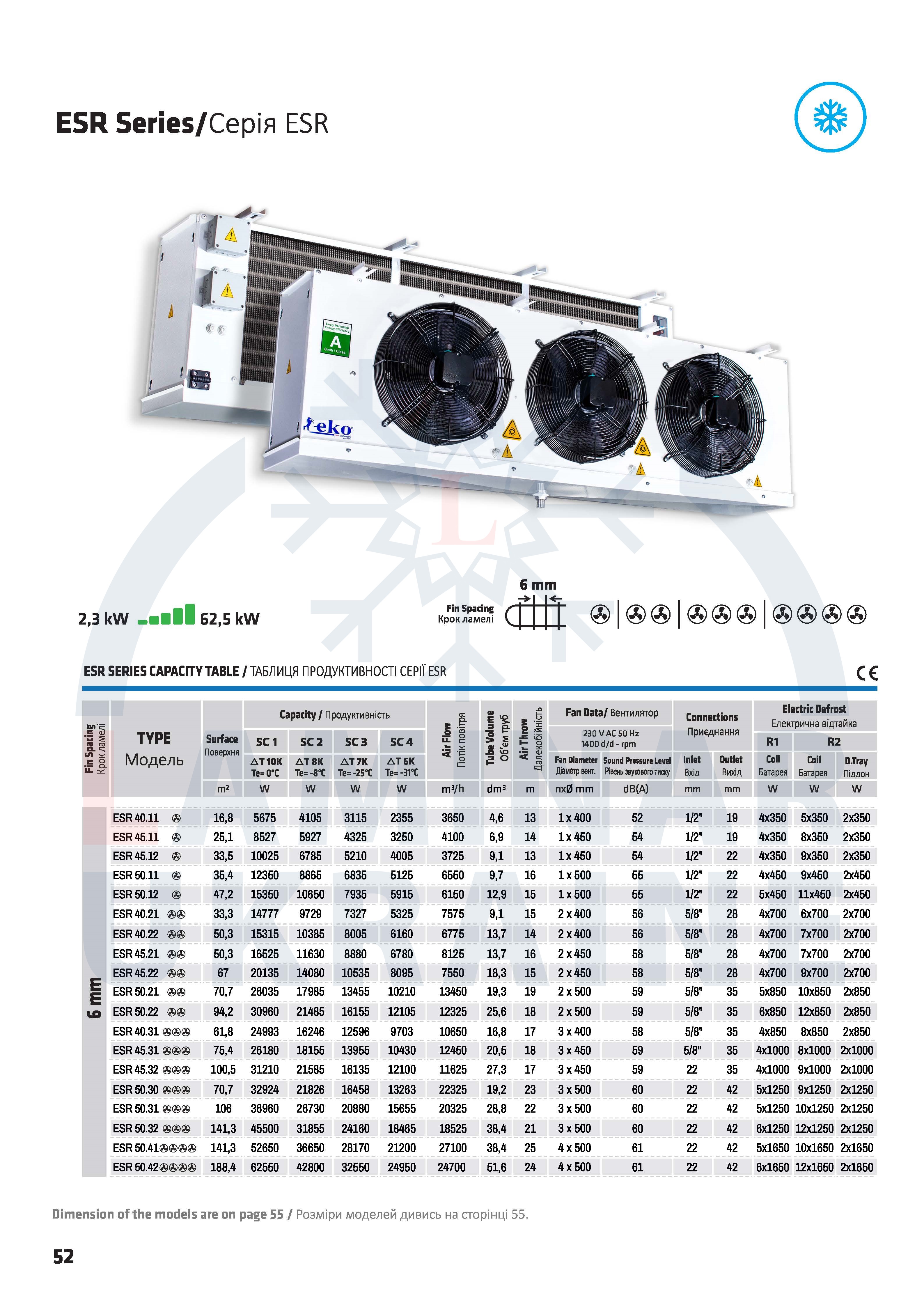 | ESR 40.11 | Повітроохолоджувачі | EKOfin | ESR capacity table | Скачать |