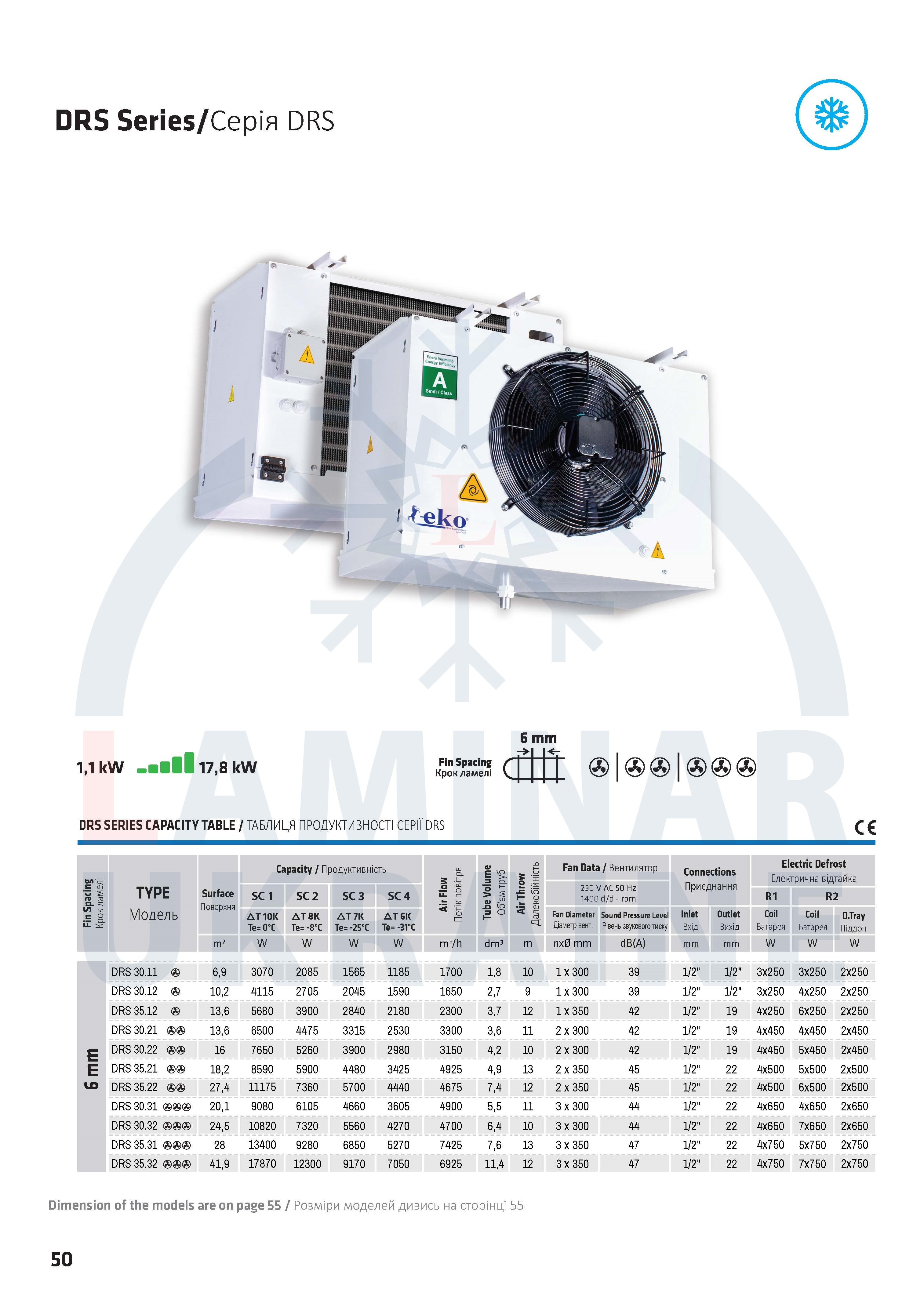 | DRS 30.11 | Повітроохолоджувачі | EKOfin | DRS capacity table | Скачать |