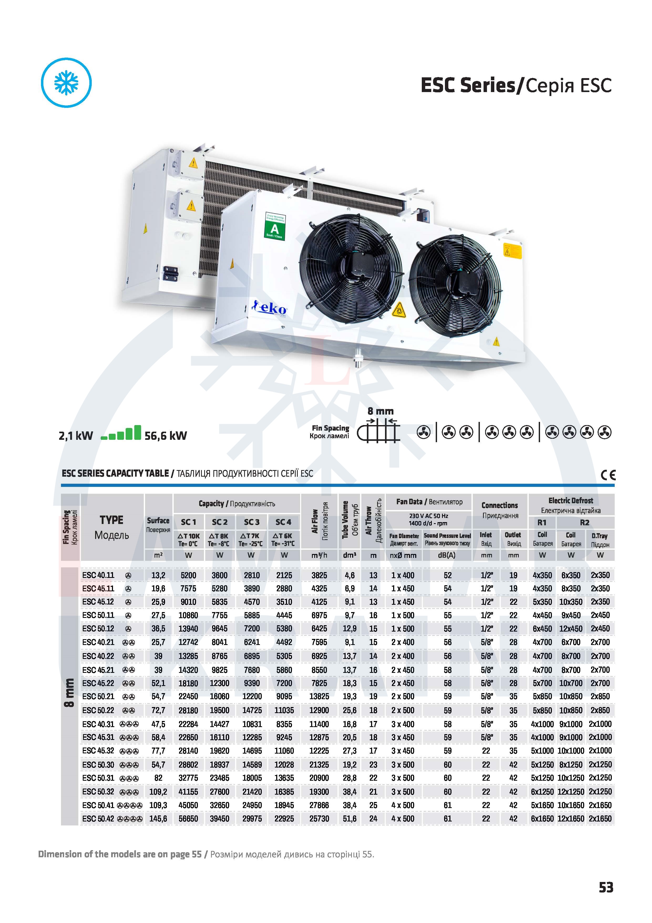 | ESС .11 | Повітроохолоджувачі | EKOfin | ESC capacity table | Скачать |