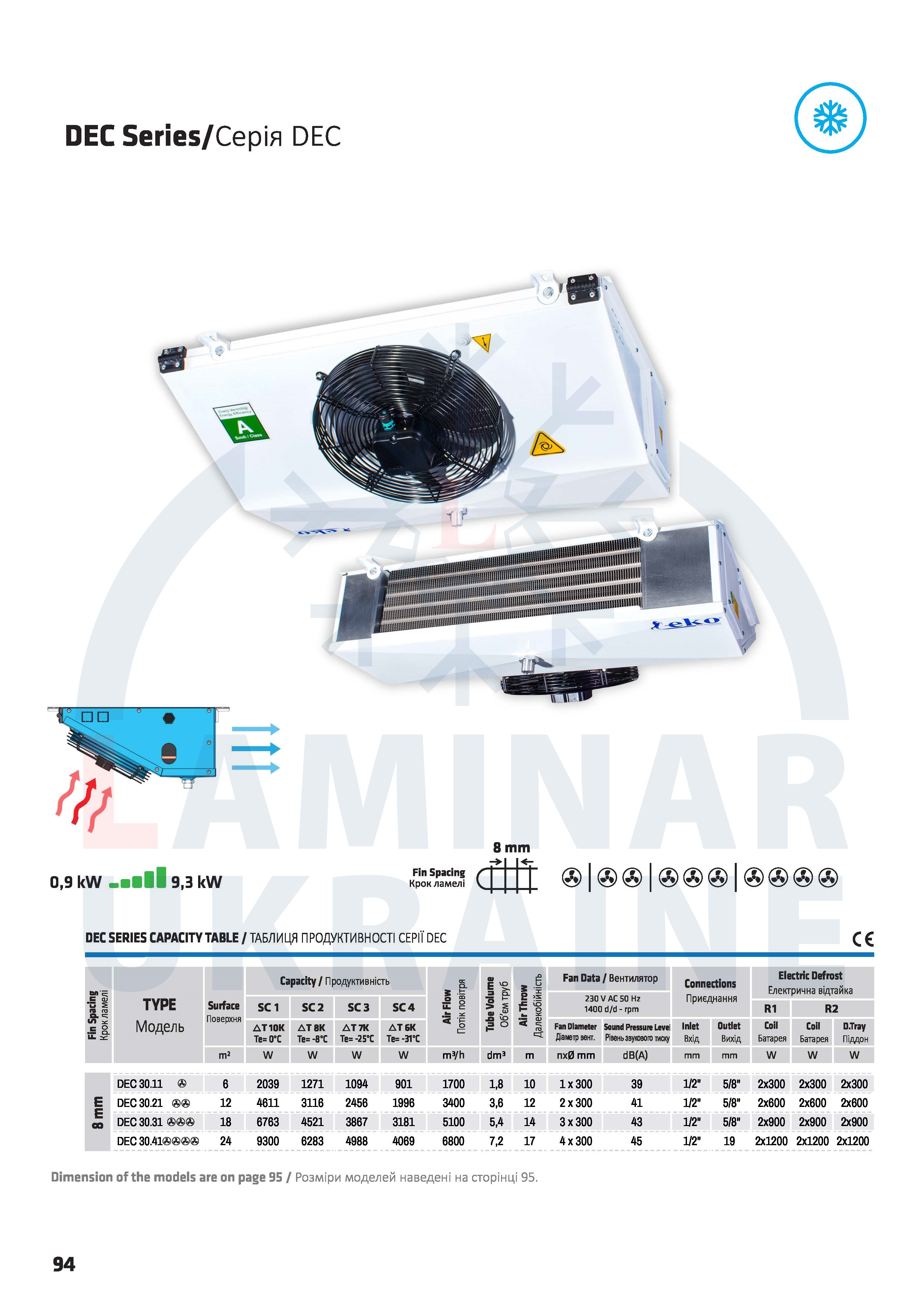 | DEC 30.41 | Повітроохолоджувачі | EKOfin | DEC capacity table | Скачать |