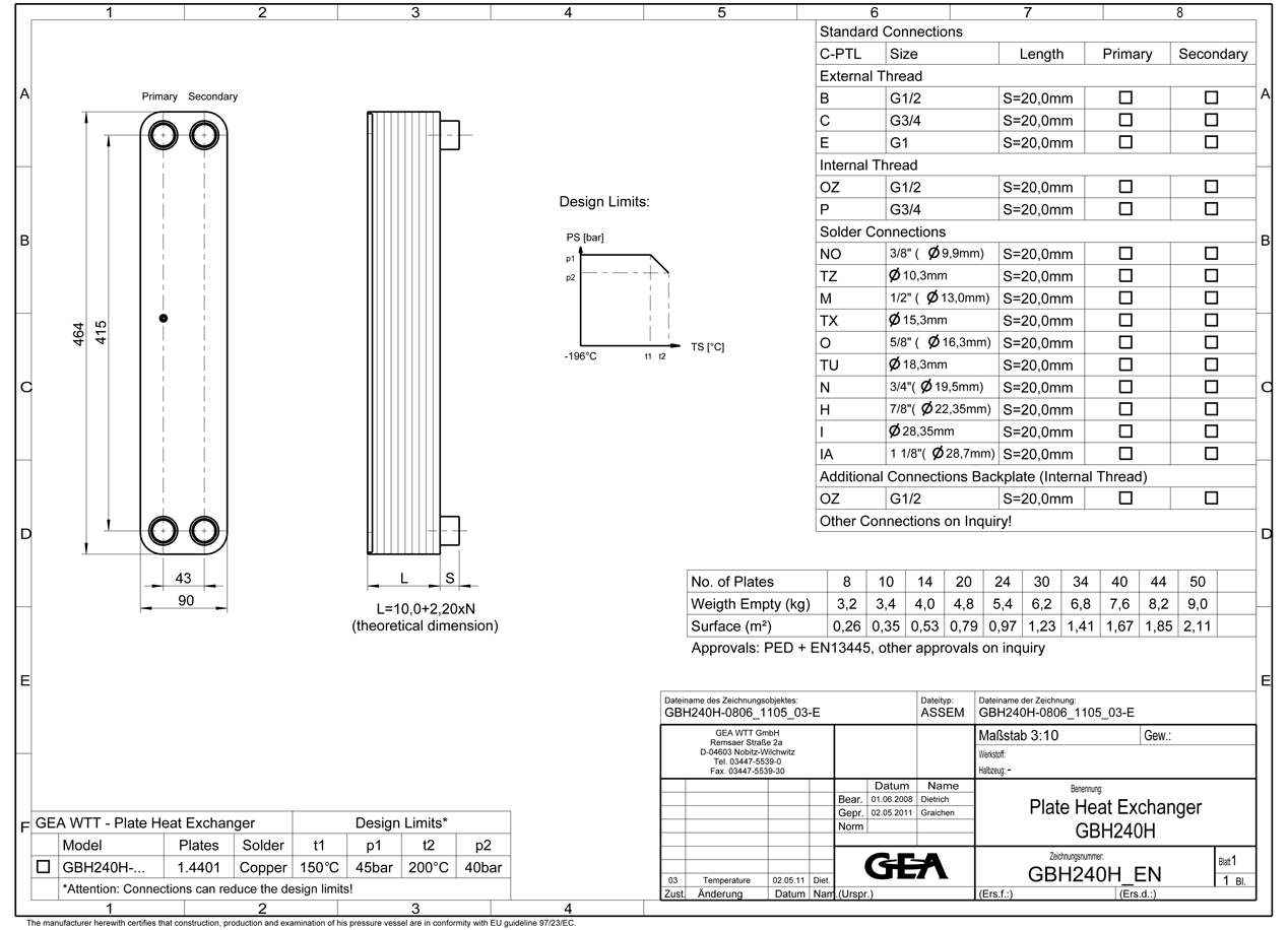 45 бар при 150 ° C, 40 бар при 200 ° C